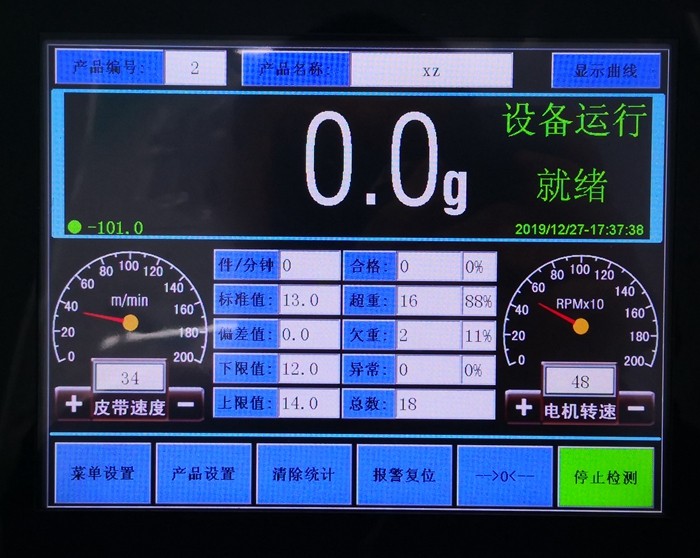 產品經由上一段流水線或者人工上料后輸送進入到“檢重秤”。