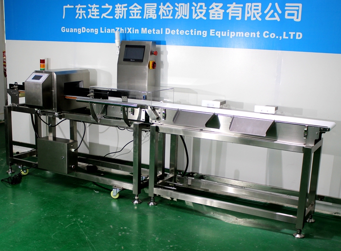 金屬檢測(cè)和重量檢測(cè)一體機(jī),主要用于小包裝干貨等按重量大小分選規(guī)格或等級(jí),適用于企業(yè)流水線產(chǎn)品生產(chǎn)動(dòng)態(tài)稱重、產(chǎn)品品質(zhì)重量檢測(cè)及金屬異物檢測(cè),專用于產(chǎn)品整箱缺件、附件缺失以及金屬殘留金屬異物檢查等等,配備自動(dòng)剔除不合格處理分選設(shè)備,前段為金屬超標(biāo)剔除,后段剔除為重量檢測(cè)不合格剔除。