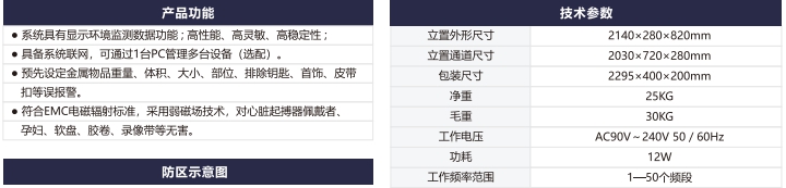 多區(qū)位報警功能:人體不同位置的多個金屬通過安檢門時同時報警,并可以指示多個金屬的位置.