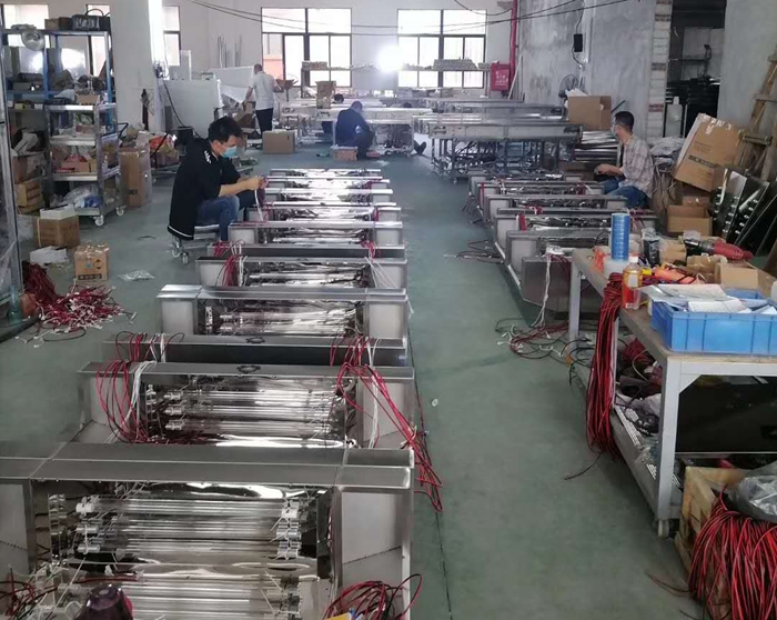 二、功能說明:隧道式殺菌機(jī)采用高能微波和紫外線輻照兩種滅菌法共同協(xié)助進(jìn)行滅菌滅活,可以有效地殺滅在產(chǎn)品表面的細(xì)菌等微生物(如大腸桿菌、霉菌)或使細(xì)菌總數(shù)大副下降從而起到殺菌作用。 選擇適合的條件,盡可能減少對食品等產(chǎn)品原料或成品有效成分的破壞,達(dá)到無損殺菌的目的。通過對比試驗(yàn)得出的結(jié)果,采用微波殺菌技術(shù)可以最低限度地減少食品原有成分,而且可以有效地控制細(xì)菌總數(shù)和致命菌數(shù)量,所以食品殺菌機(jī)是相對紫外線輻照滅菌法更適用紫外線殺菌。